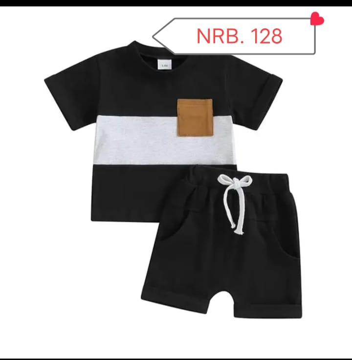 "Black Pocketing "Short Sleeve Summer Baby T-Shirt set